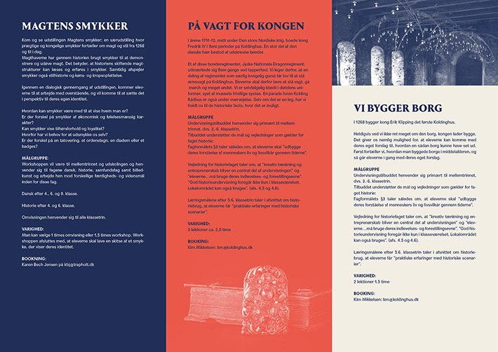 Koldinghus has their own corporate identity that needs to be met. With this in mind I designed the 3-fold flayer showing benefits for schools.