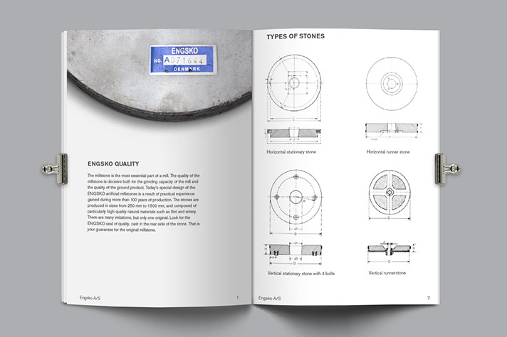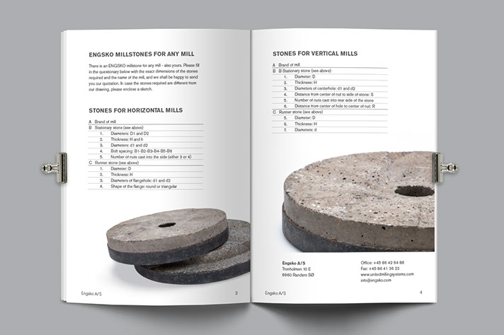 Engsko is a manufacturer of millstones and wholesaler of tailor-made milling systems and milling equipments. I developed the leaflet and organized and executed the photo shoot.