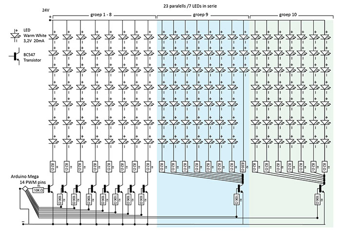 Together with Sarah Reichenbach we created the concept and research. We visited the Kinetica Art Fair in London to get inspired. I designed and produced the flowers with all the LED lights, making technical drawings, while Sarah worked on the kinetic frame.