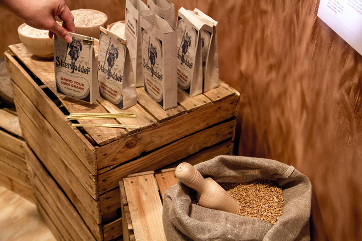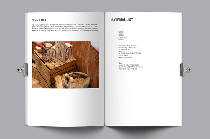 Together with a local history museum, a former mill, we creating a teaser exhibition that evokes the curiosity in people. A link is created to encourage the visitor to come to the museum. This is the packaging, which is specially made for the exhibition and inspired by the former brand of the mill. The visitors are encouraged to put grain in the package and grind it into flour at the mill. In this way, visitors take a piece of the exhibition home as a useful reminder. The exhibition space is designed in an non-traditional way, since experience, interaction and user engagement became more and more important within modern museums.