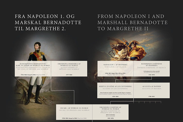 This family tree shows how Napoleon I, Marshall Bernadotte and Margrethe II are related, and explains how French jewels ended up in the Danish Royal Collection.